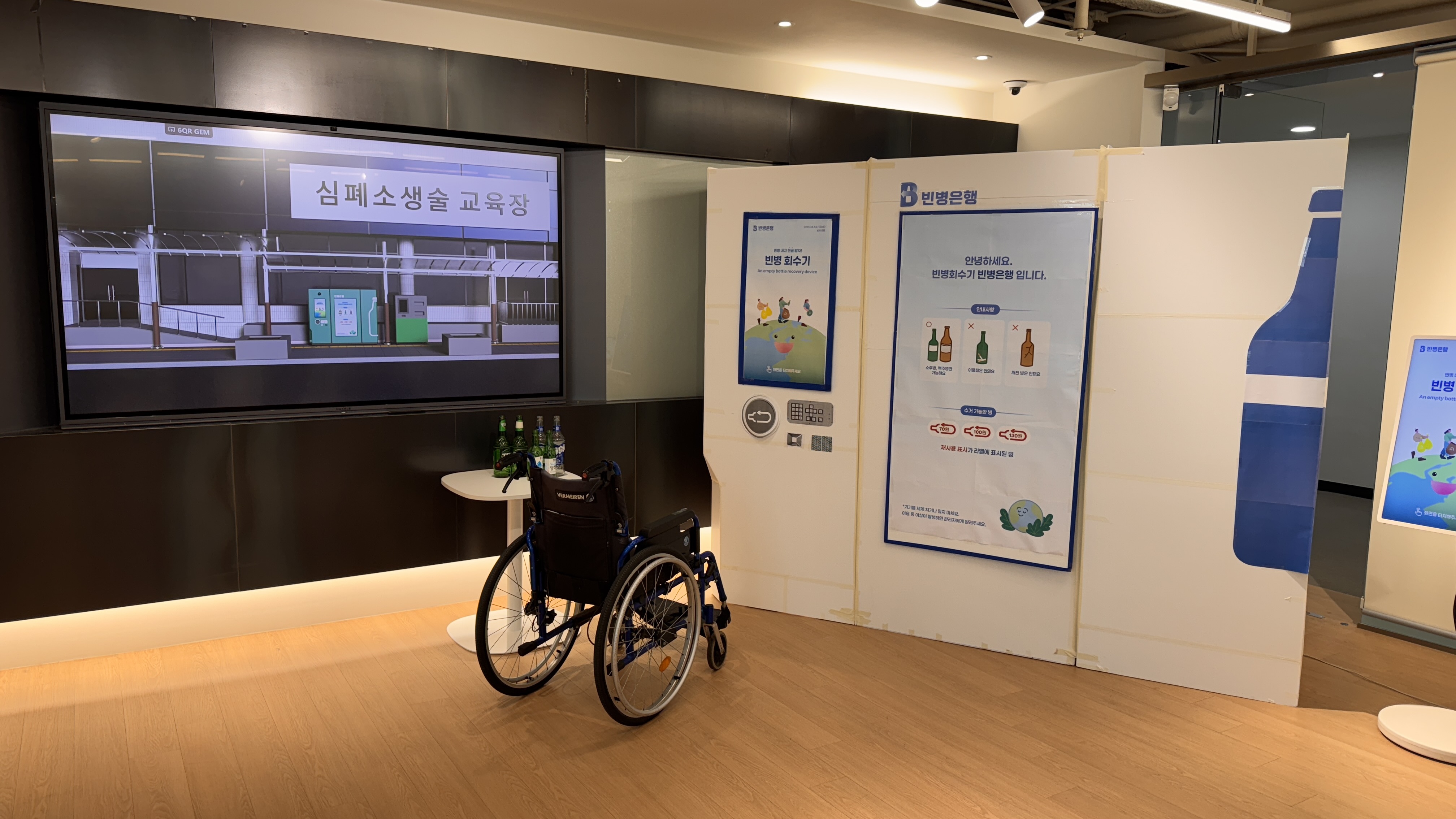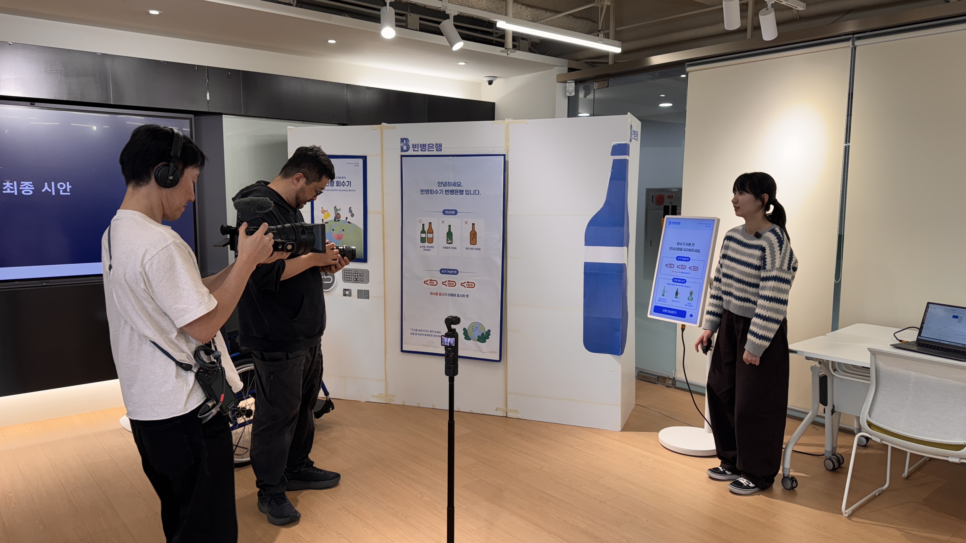HIDE Lab은 현장 관찰, 사용자 인터뷰, 행태 분석을 기반으로 기존 빈병 무인회수기에서 발생하는 접근성 문제, 정보 이해도 부족, 공간 혼잡 등 실질적인 불편 요소를 체계적으로 도출하였습니다. 이를 바탕으로 누구나 쉽게 기기에 접근할 수 있도록 투입구와 조작부의 위치와 높이를 재설계하고, 시각·청각·촉각을 활용한 다중감각 피드백 시스템을 고도화하였으며, 사용자 동선과 수거 공간이 자연스럽게 연결되는 순환경제 기반의 공간 UX 구조를 함께 마련하였습니다. 더불어, 빈병이 다시 자원으로 순환되는 과정을 직관적으로 이해할 수 있도록 환경 인식 확산을 위한 정보 디자인을 개발하여, 단순한 기기 개선을 넘어 지속가능한 행동 변화를 유도하는 공공 서비스 디자인 모델을 제시하였습니다.