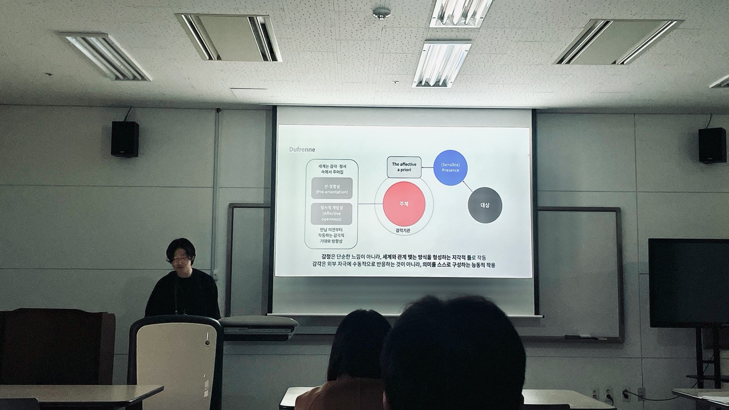 이번 발표는 기능 검증 중심의 실험 결과를 제시하기보다, 로봇과의 ‘첫 만남’에서 발생하는 경험의 구조를 다시 정의하고자 하는 담론적 성격이 강했습니다. 그래서 가능한 한 개념을 과도하게 어렵게 만들지 않도록, 핵심 문제의식과 개념들 간의 연결을 평이한 언어로 차근차근 전달하는 데 특히 주의를 기울였습니다.