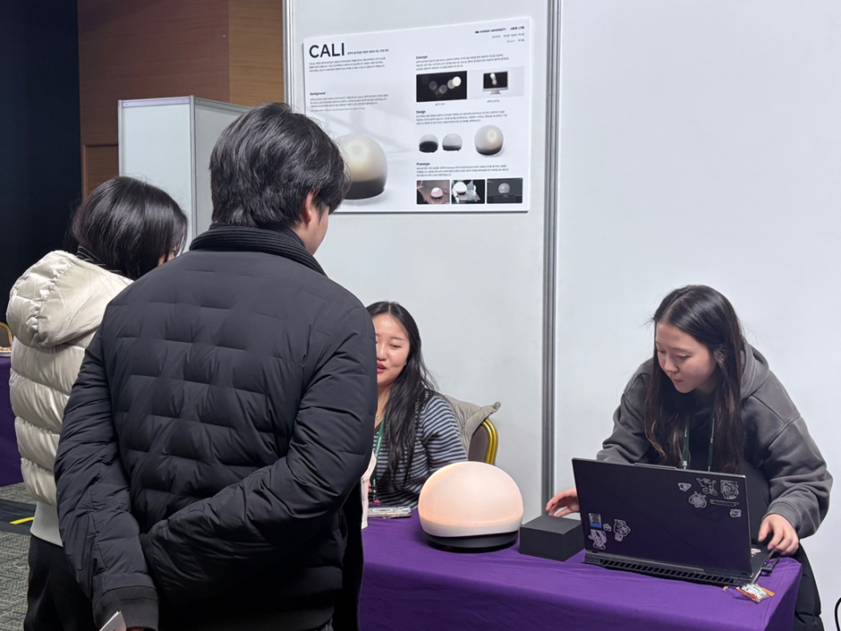 지난 2월 [날짜]부터 [날짜]까지, HCI Korea 2026 학술대회에 "CALI: 조명형 로봇의 광학적 움직임이 생명력 인식에 미치는 영향"이라는 주제로 포스터를 출품하였습니다. 처음 학회에 참가하여 어수룩한 점들도 많았지만, 학부연구원으로서 제품 디자인과 실험 진행, 논문 작성까지 전 과정에 참여한 연구를 직접 발표할 수 있고, 또 시연할 수 있는 것은 저에게 있어 매우 귀중한 경험이 되었습니다. 이러한 기회를 주신 박기철 교수님께 감사 인사 드립니다.