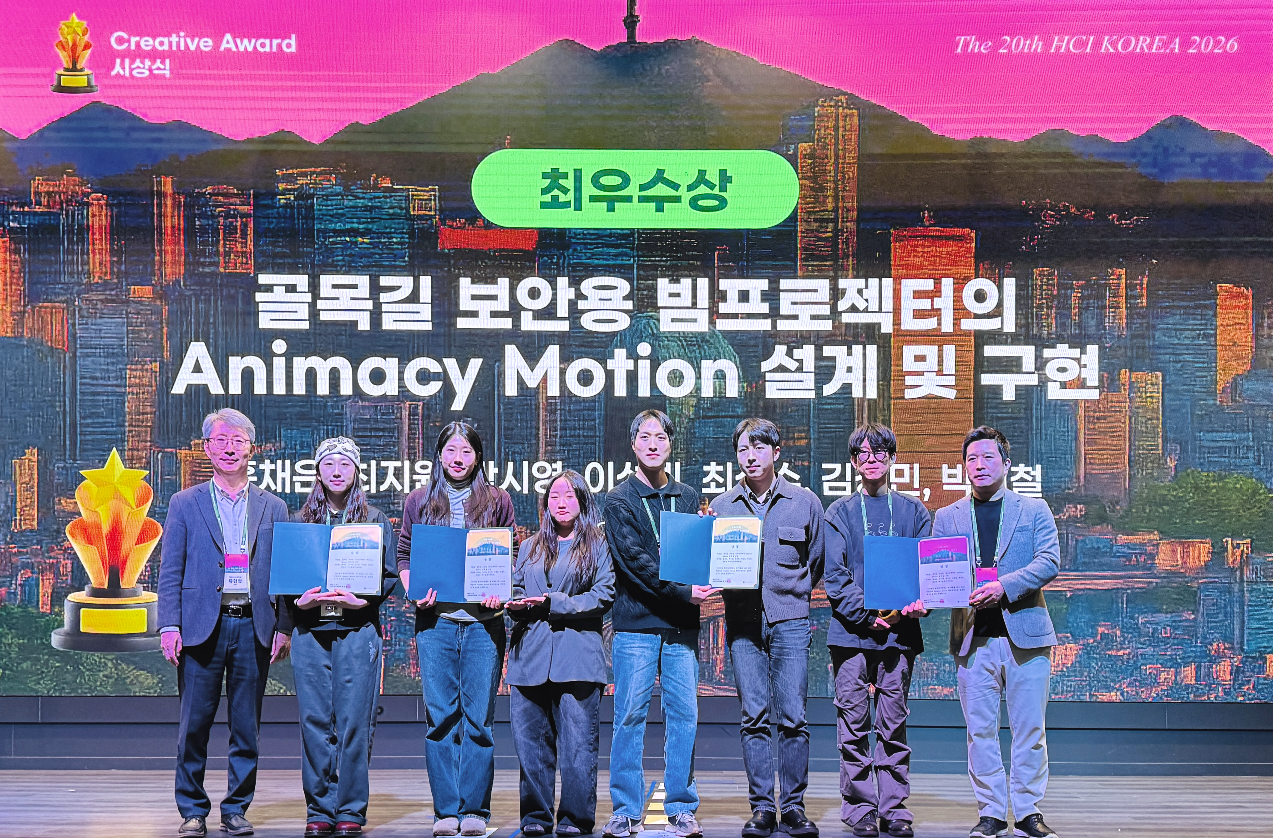 HIDE Lab(인간로봇상호작용디자인공학연구실)은 2026년 1월 26일부터 28일까지 비발디파크에서 열린 HCI KOREA 2026에 참가하여, Creative Award 최우수상을 수상하는 뜻깊은 성과를 거두었습니다.