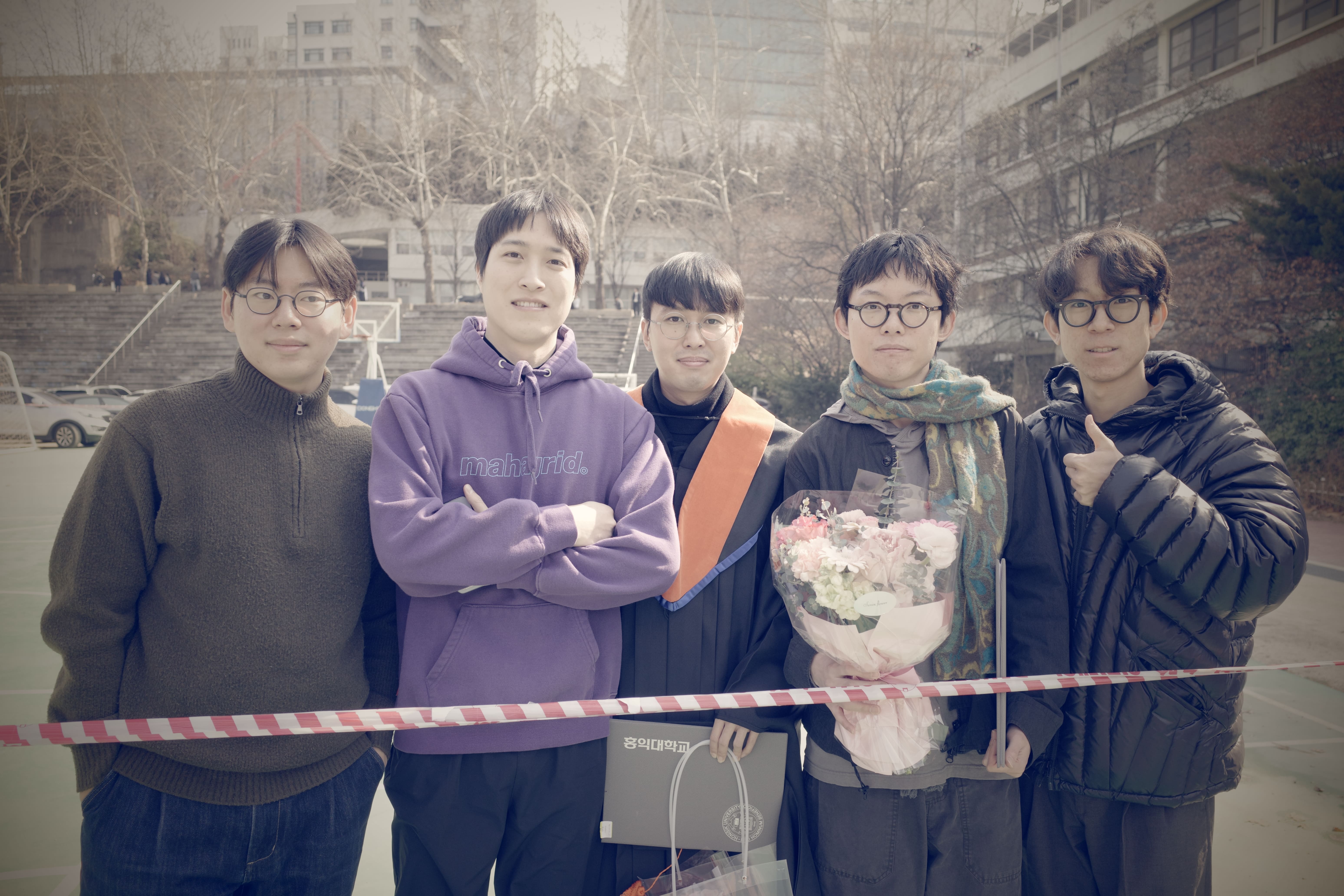 황석영, 차재훈, 조규형, 신상일 석사연구원의 졸업을 진심으로 축하합니다. 연구실에서 함께한 시간 동안 네 사람이 보여준 성실함과 책임감, 그리고 각자의 자리에서 묵묵히 쌓아온 노력은 연구실에 매우 소중한 자산이었습니다. 때로는 쉽지 않은 과정도 있었겠지만, 각자의 방식으로 고민하고 배우며 한 단계씩 성장해온 모습이 참 인상 깊었습니다.