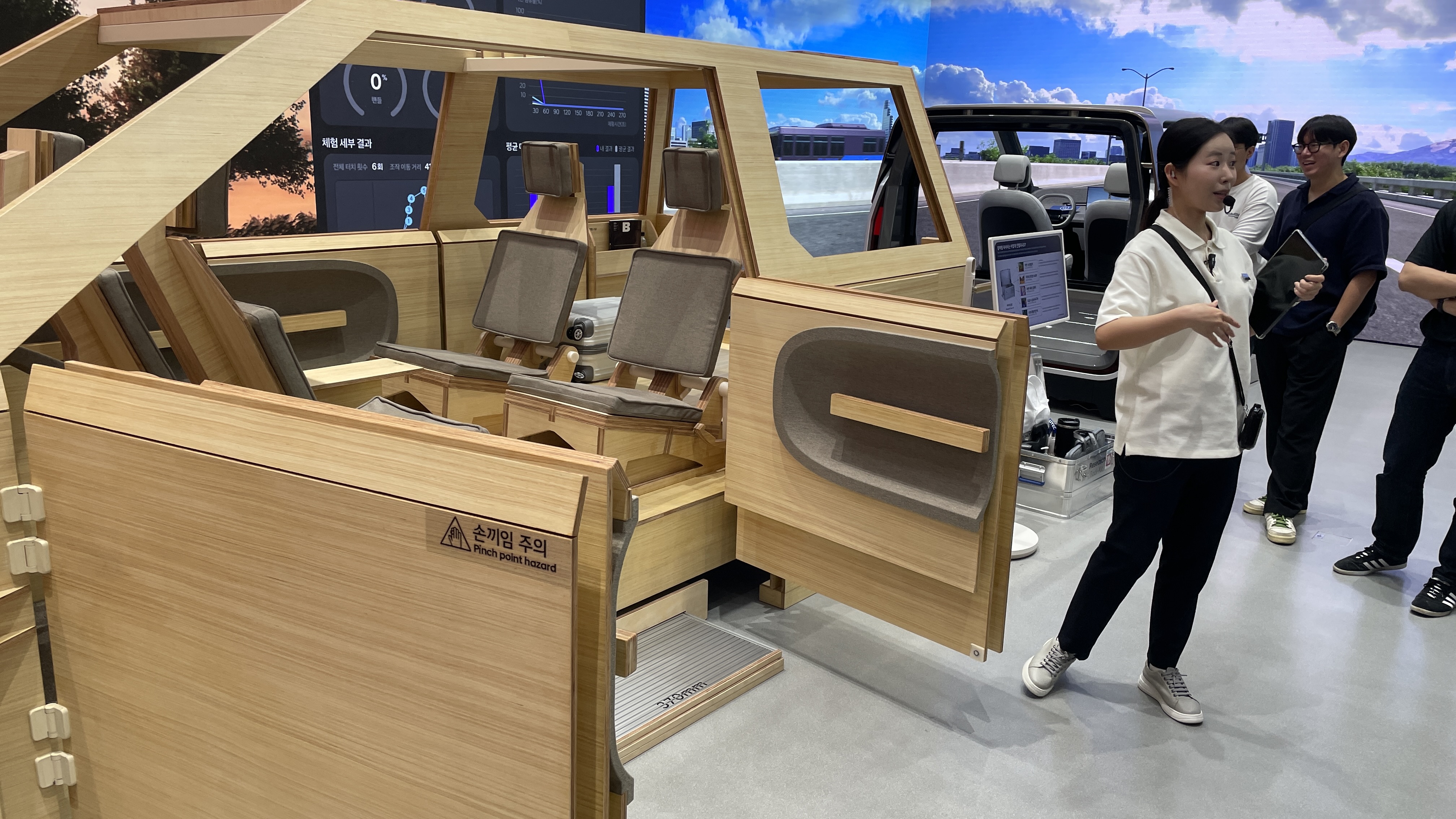 스튜디오의 1층 오픈 랩에서는 UX 연구 과정과 미래 모빌리티 서비스에 대한 전시를 관람하며, 연구자와 사용자가 함께 참여하는 사용자 경험 검증 방식을 이해할 수 있었습니다. UX 테스트 존에서는 나무로 제작된 실험용 ‘스터디 벅’에 앉아 좌석 구성과 콘솔 배치를 직접 체험하였으며, VR 기기를 활용하여 몰입형 사용자 환경을 경험하였습니다. 또한 검증 벅에서는 실제 차량과 유사한 주행 시뮬레이션과 아이트래킹 분석을 통해 시선 흐름과 인터페이스 사용성을 점검하는 과정을 체험하였습니다.