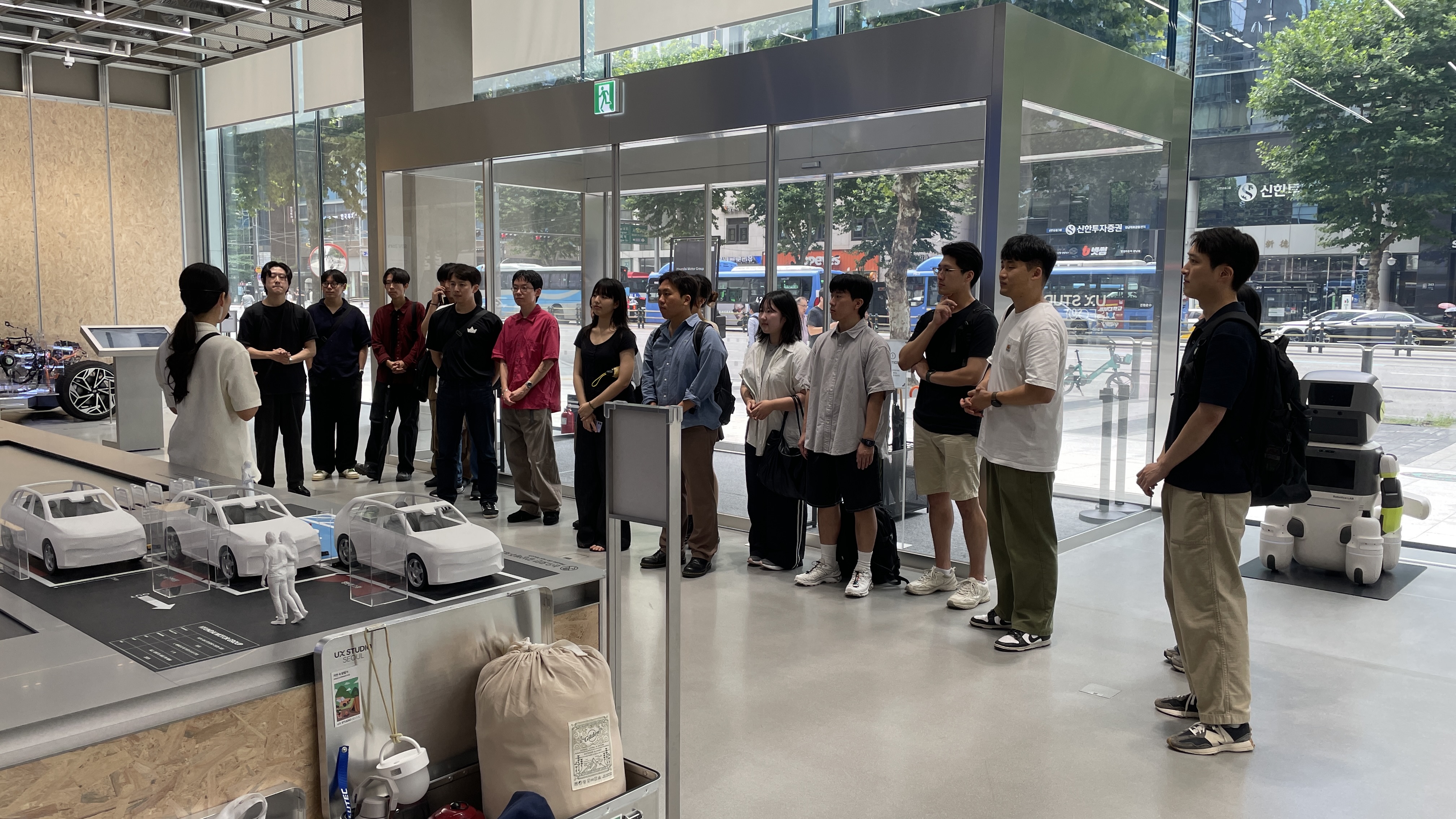 8월 25일 월요일, HIDE Lab에서는 여름학기 디자인 트립의 일환으로 강남역 인근에 위치한 현대자동차 UX 스튜디오를 방문하였습니다. 이번 방문은 연구실 구성원들이 도슨트 투어를 통해 현대자동차가 추구하는 미래 모빌리티 사용자 경험의 방향성을 직접 살펴보고, 다양한 체험 활동을 경험할 수 있는 뜻깊은 시간이 되었습니다.