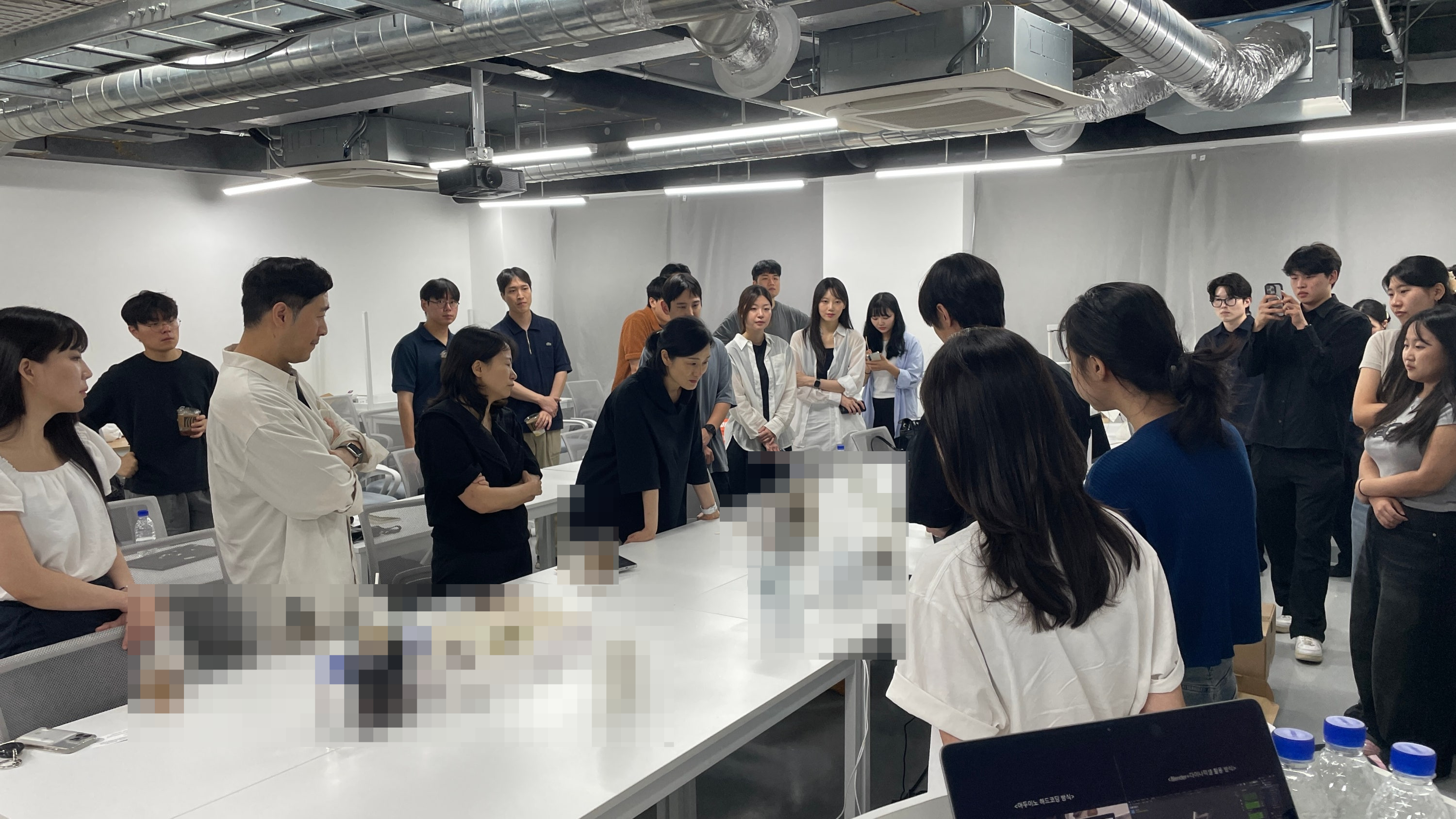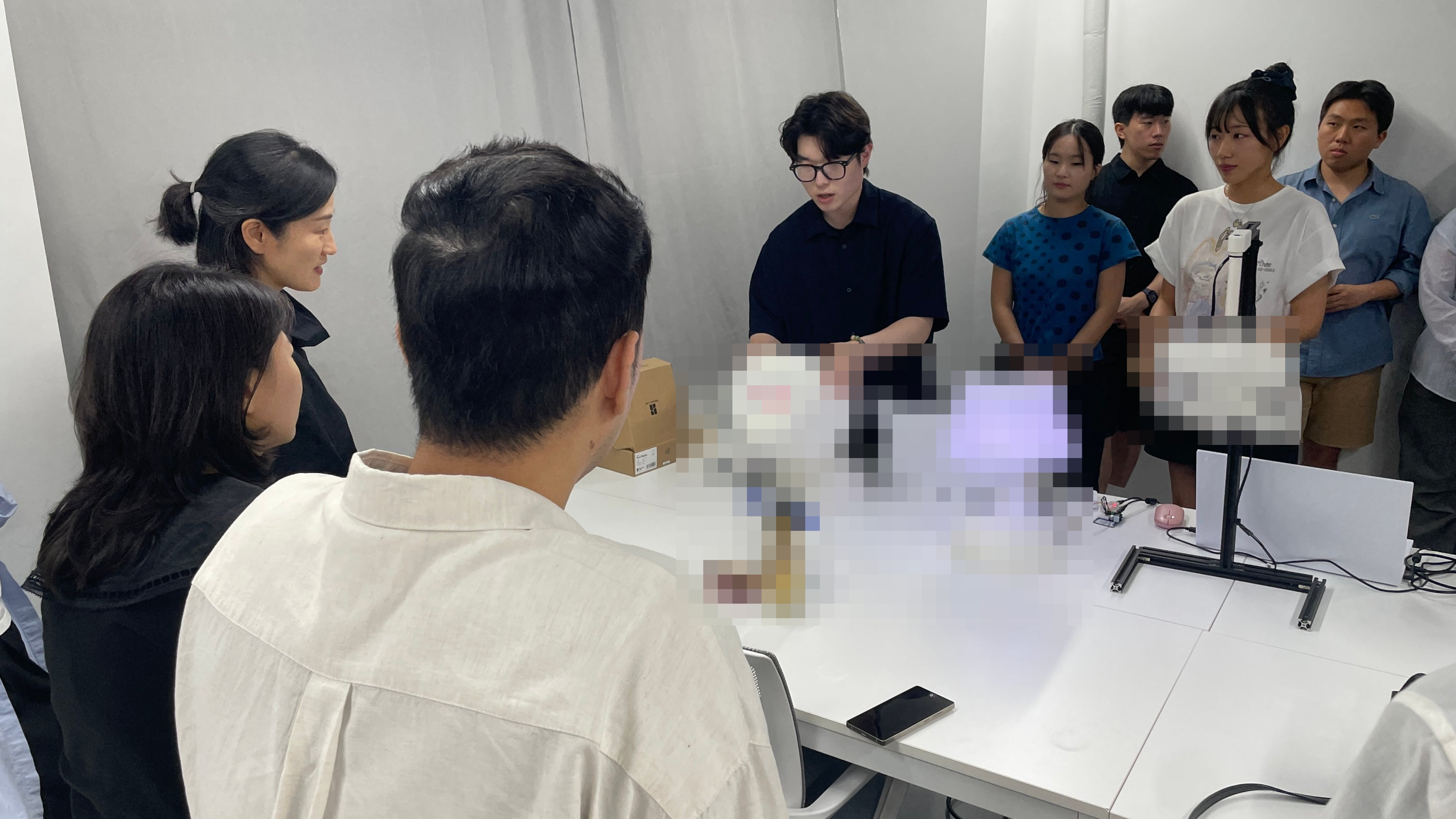 지난 9월 5일 금요일, 삼성전자 디자인경영센터 UX팀을 이끄시는 홍유진 부사장님을 비롯해 오경희 그룹장님 등 총 11분의 임직원께서 HIDE Lab을 방문해 주셨습니다. 이번 방문은 최근 마무리된 산학 프로젝트의 최종 결과 발표와 함께, HIDE Lab 연구원들이 직접 제작한 워킹 프로토타입 시연을 현장에서 공유하는 뜻깊은 자리였습니다.