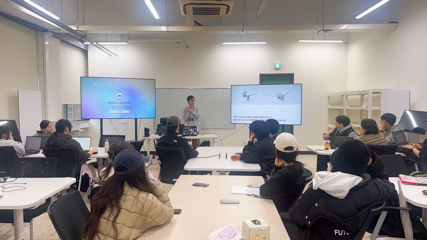 지난 10월 30일(목), 홍익대학교 인간중심통합디자인공학연구실(HIDE Lab)의 황석영 석사연구원이 계원예술대학교 미래디자인학부 Space Art & Technology 전공의 초청을 받아 “HRI(Human-Robot Interaction) & Physical UX” 특강을 진행했습니다. 이번 강연은 디자인과 로봇 기술의 융합을 통해 인간과 로봇의 관계를 새롭게 정의하는 것을 목표로, 실제 사례와 실습 중심의 구체적인 내용으로 구성되었습니다.