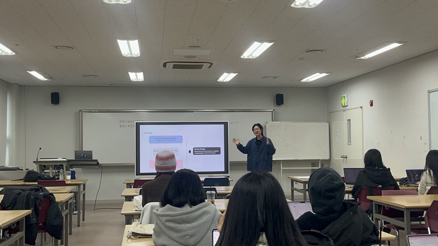 이번 학기 「Design Theory & Trends」 강의는 디자인을 단순한 기술적 결과물이 아닌 사고의 언어이자 사회적 통찰의 도구로 바라보는 교육 철학을 실천하고 있으며, 박효상 연구원은 이를 통해 학생들이 미래 디자인의 방향성을 스스로 고민하고 탐색할 수 있는 성장의 장을 마련하고 있습니다.